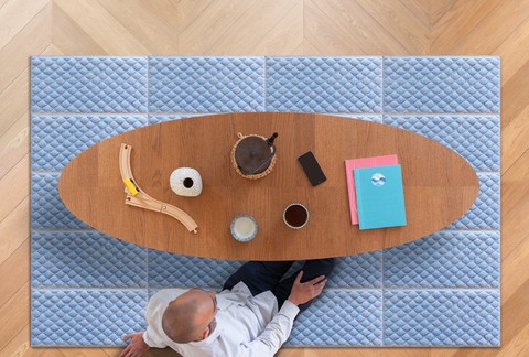 Le projet Archipels est une gamme de dalles de sol en lin pour l’intérieur. Les différentes dalles, allant du rigide au très moelleux, offrent des types de confort variés et permettent d’investir l’intégralité des pièces d’un habitat. L’idée de ce projet est de réinventer le revêtement intérieur en offrant une expérience sensitive différente, mais aussi de proposer un produit qui, par ses qualités de régulation (grâce au lin), a un impact écologique dans l’habitat. Par ailleurs, les dalles sont conçues pour le long terme. En fin de vie, elles peuvent être décomposées et chaque élément recyclé.