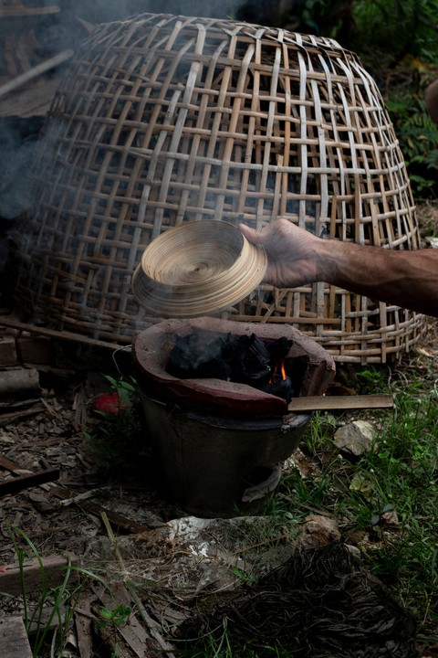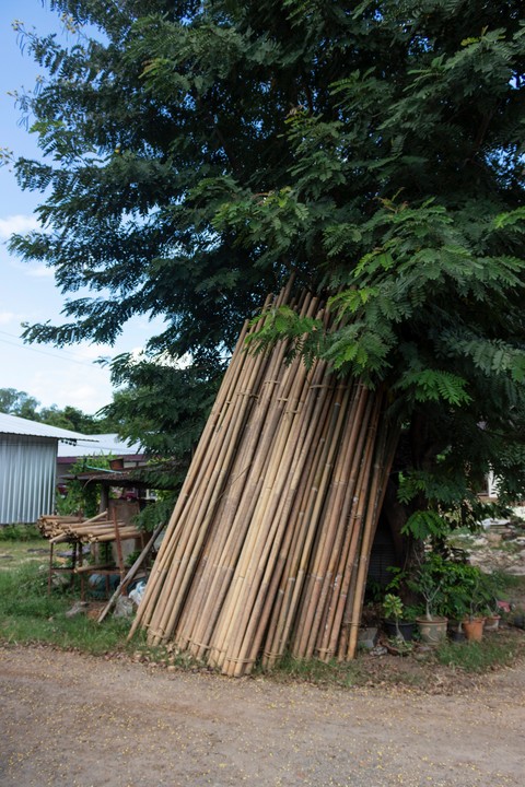 Nous avons travaillé au sein de l’atelier Slowstich Studio, spécialisé dans la teinture à l’indigo et le Shibori, ainsi qu’avec les artisans de la Sri Pun Krua community, qui fabriquent des objets en «bambou roulé» (coiled bamboo).