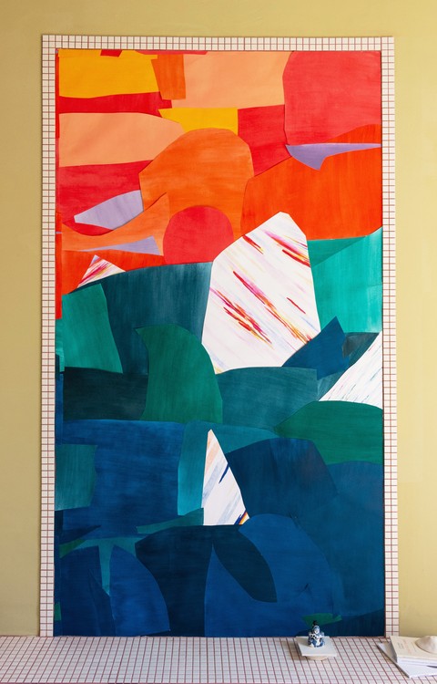 Des objets, fleurs, livres et bibelots peuplent ça et là cette excroissance murale. Les murs et le plafond sont ponctués de fresques qui pourraient presque rappeler certains paysages du Cap Corse où les montagnes se jettent dans la mer.