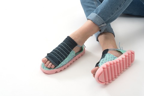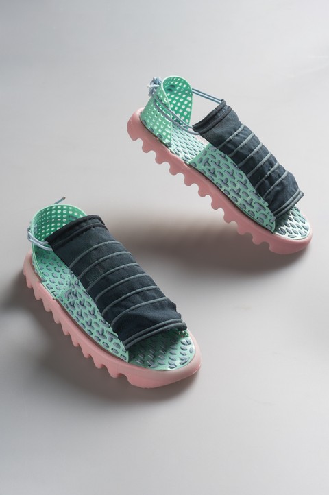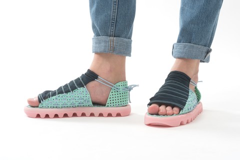 Ce projet est une exploration de nouveaux procédés de mise en forme de la matière textile. Il s’articule autour d’une recherche structurelle et esthétique sur la grille donnant lieu à une série de surfaces expérimentales et à trois objets : une casquette et deux paires de chaussures.